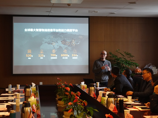 庄玉良经理(右1)向于飞副局长(左1)颁发太阳成集团122ccvip物流工程硕士专业学位研究生校外实践导师聘书