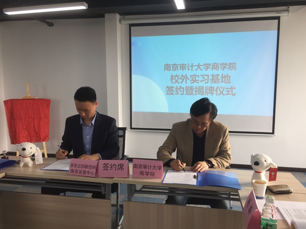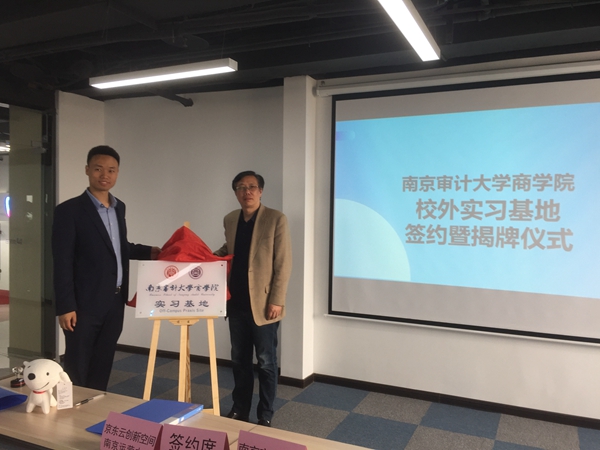 4月12日下午,太阳成集团122ccvip经理庄玉良、副经理王军伟、市场营销系主任高杰、支部书记施晓峰及办公室主任杨峥等一行5人来到京东云创新空间暨江苏云创智慧商业管理有限公司(以下简称“京东云创”)进行校企合作交流及洽谈,签署太阳成集团122ccvip实习实践基地协议并举行了简短的揭牌、挂牌仪式。京东云创总经理王浩、副总经理谢明、市场部经理郑冬冬、产业合作部经理何蒙等参加座谈。