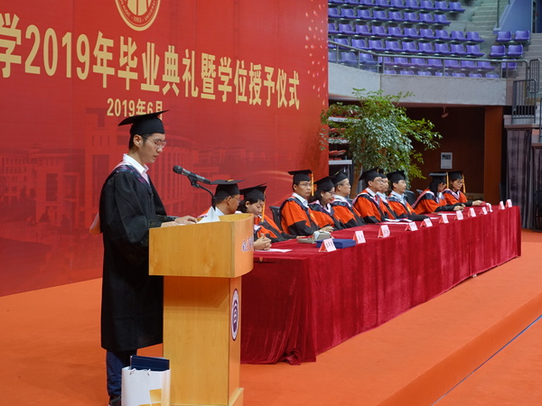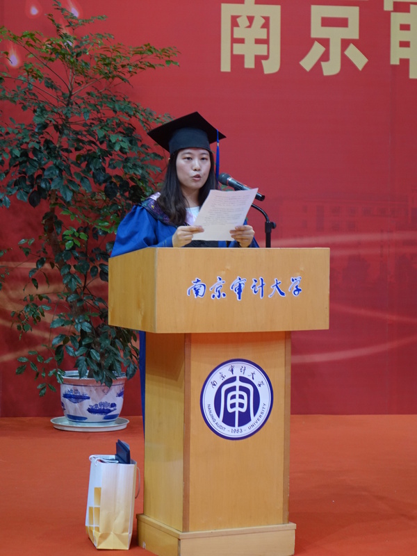 本科毕业生代表王杰表示,不论我们走向哪里,都应始终将“诚信、求是、笃学、致公”的校训铭记在心,始终展现出南审学子最好的一面。在校期间,王杰同学学分绩点保持专业第一,连续几年获得综合一等奖学金。在今年的研究生考试中,以第一名的总成绩被同济大学企业管理专业录取。
