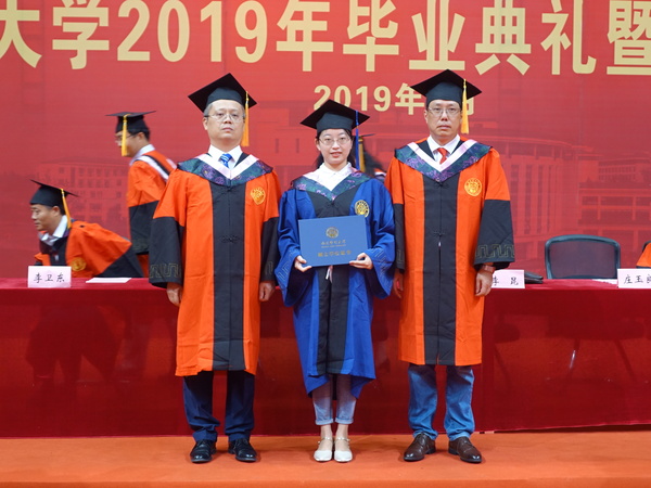 各位导师先后为2019届硕士、本科毕业生拨穗正冠、颁发学位证书并合影留念。