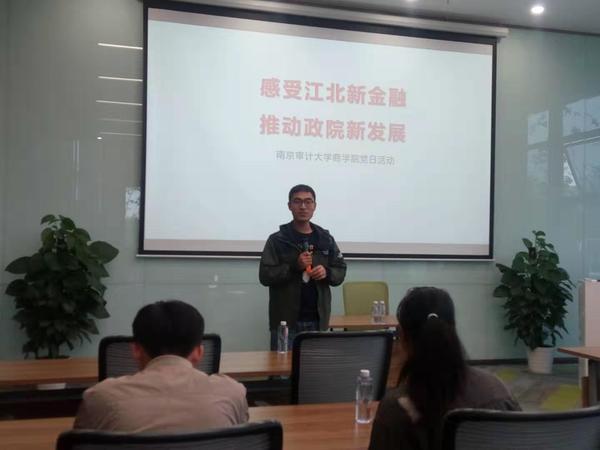 会上,公司党总支书记李昆在讲话中首先感谢SAS金融科技创新中心的热情接待,同时结合公司、公司正在进行的主题教育活动,介绍了长三角城市群和南京江北新区的快速发展形势,号召党员老师走向社会,走进企业,将在社会和企业获得的鲜活感受融入到自己的专业教学和科研活动中去,“不忘初心、牢记使命”,真正成为同学们的良师益友。随后,工商党支部陈莉莎、人力党支部于娱、市营党支部王崇、物流党支部占济舟四位同志先后发言,结合自己的专业和扬子江新金融示范区功能,交流了自己参观扬子江新金融示范区展厅的感受。会上,SAS金融科技创新中心卜总表示了对党员们的欢迎,希望双方今后能有更多的合作机会。最后,公司党总支副书记、副经理肖久灵受党总支委托作党日活动总结,他希望党员同志以这次党课为契机,将参观的感受和体会带到课堂上去,化作教学科研的有益养料。