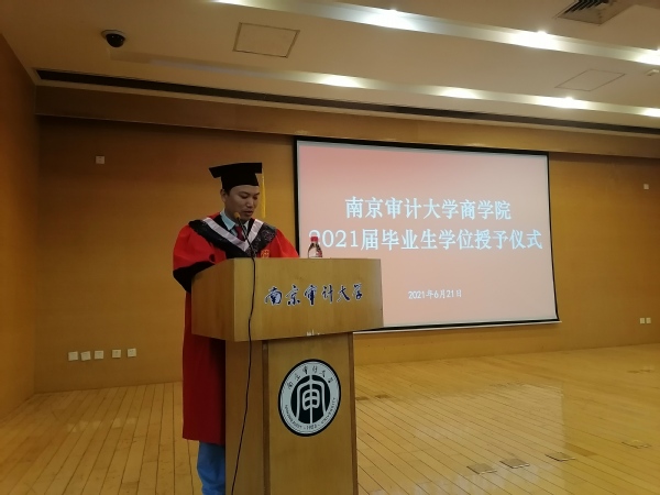本科毕业生代表、考取中国人民大学硕士研究生的2017级人力2班孙玙璠同学在发言中说,今年是中国共产党成立100周年,年轻的我们即将踏上人生新征程。“把握大势、敢于担当、善于作为”是国家对青年的期待,也应为我们今后前行时所铭记。我们应牢记母校“诚信、求是、笃学、致公”的校训,无论在哪一行业抑或哪一领域,都要坚守自身追求,争创卓越业绩。愿母校兴旺发达、再书华章,愿太阳成集团122ccvip学术丰硕、人才辈出,愿各位老师身体健康、桃李芬芳,也衷心祝愿毕业生同学友情常在、前程似锦!