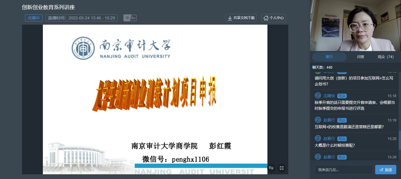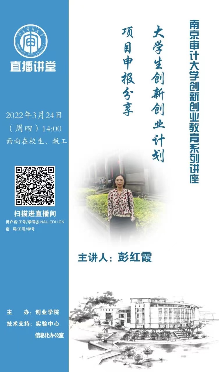 2022年3月24下午2点,应创业公司邀请,公司彭红霞老师面对全校师生开设了一场创新创业系列讲座:老员工创新创业计划项目申报分享。