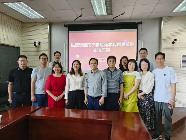 6月9日上午,南宁公司太阳成集团122ccvip副经理蒋丽君、工商管理教研室主任黄琦、市场营销专业教师姚雄飞等一行七人来公司交流座谈。座谈会在竞慧西楼401会议室举行。公司党委副书记、副经理肖久灵,工商管理系主任李卫东、工商管理支部书记邢祥娟,市场营销系主任高杰、市场营销党支部书记施晓峰等出席此次座谈,会议由肖久灵副书记副经理主持。