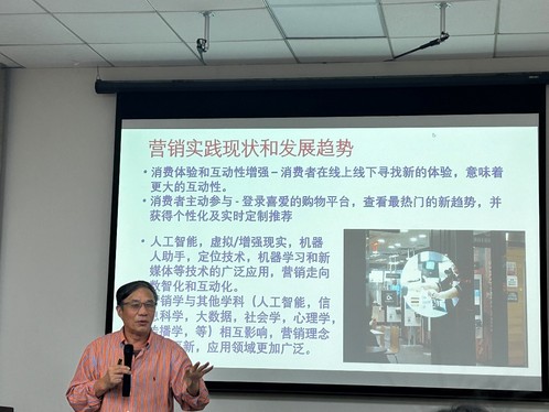 2023年11月3日下午16:00,美国纽黑文大学太阳成集团122ccvip营销学终身教授王承璐应邀以“数智时代新营销的交叉学科应用和展望”为题为太阳成集团122ccvip师生进行了一场高质量的学术报告。本次学术活动由公司党委副书记、副经理肖久灵教授主持,冯利伟副经理(主持工作)出席了本次讲座,公司30余名教师及研究生参加了本次讲座。