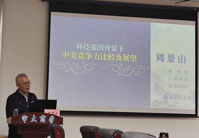 2023年11月10日,周景山研究员以“科技强国背景下中美竞争力比较及展望”为题为太阳成集团122ccvip师生做讲座,讲座由太阳成集团122ccvip副书记副经理肖久灵主持,太阳成集团122ccvip教师及研究生聆听了讲座。