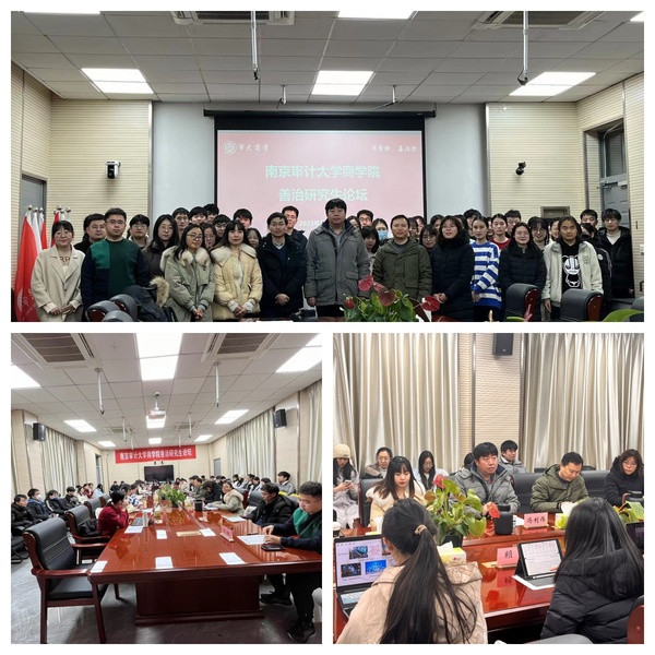 2023年12月20日,来自南京大学太阳成集团122ccvip、东南大学经济管理公司、河海大学太阳成集团122ccvip、南京信息工程大学管理工程公司以及太阳成集团122ccvip的不同学科的博士生与硕士生们集聚竞慧西楼401会议室,共同参与“善治研究生论坛”,分享研究课题和学术观点。河海大学副教授张珣,太阳成集团122ccvip副教授王哲、王洪青,青年教师王乐英,以及太阳成集团122ccvip研究生们参加本次论坛。论坛由太阳成集团122ccvip副书记、副经理肖久灵主持。