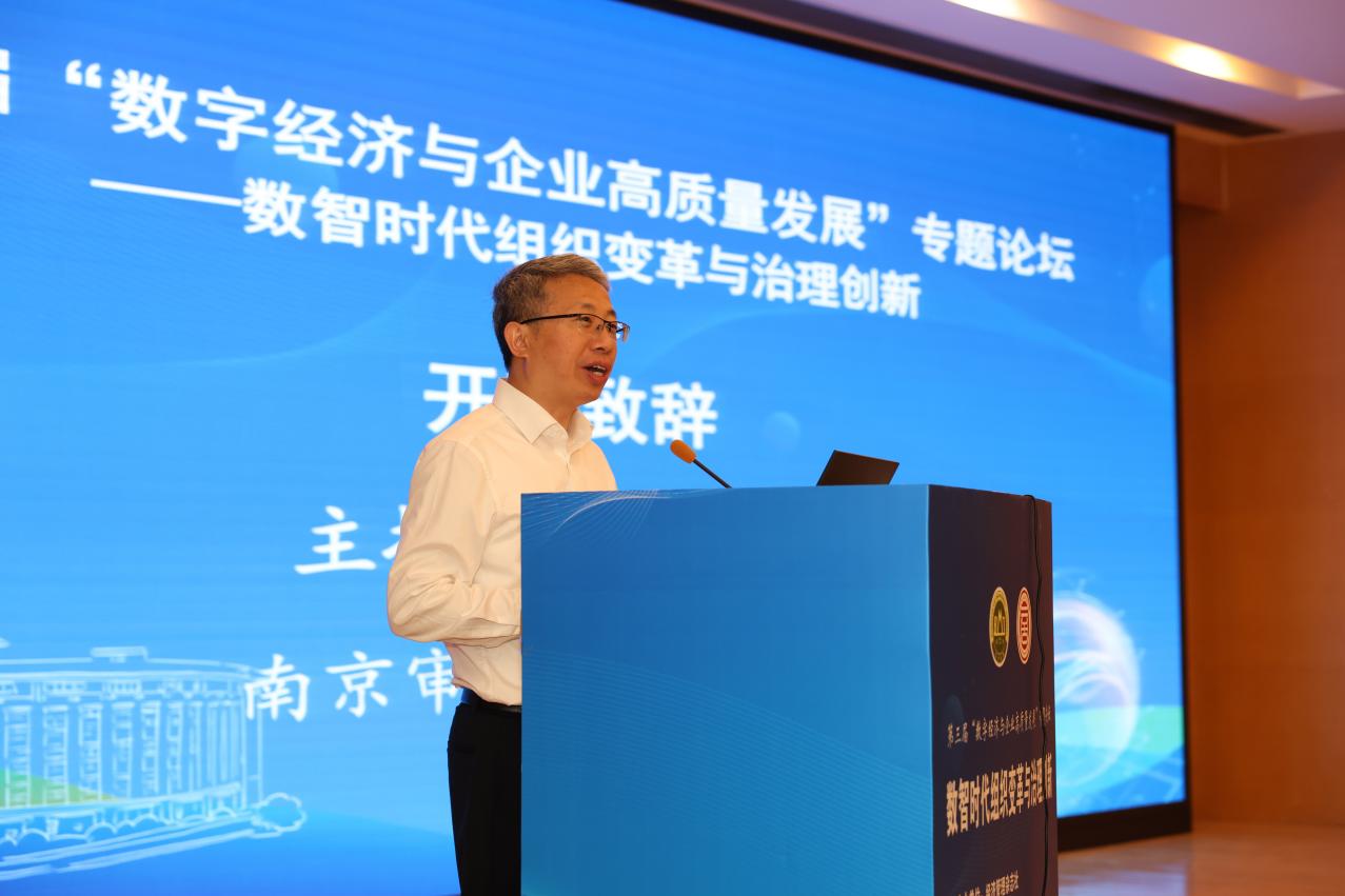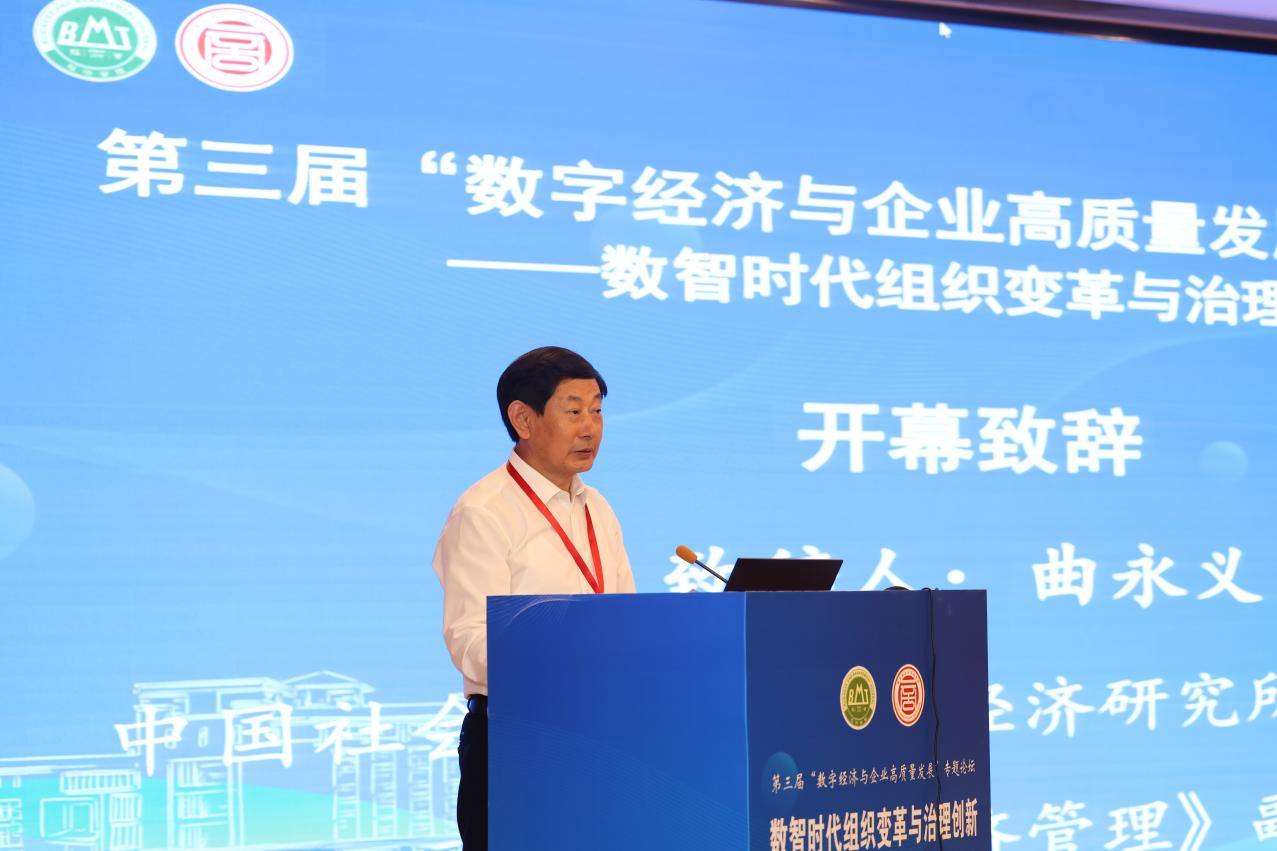 中国社会科公司工业经济研究所党委书记、《经济管理》副主编曲永义研究员代表工业经济研究所致辞。曲永义书记介绍了《经济管理》的期刊定位以及近两年取得的主要成绩,对会议承办方的辛勤付出和周到服务表示感谢,也希望各位专家学者围绕数智经济时代组织变革与治理创新进行充分研讨,为推动数字经济时代企业管理理论创新和政策创新做出贡献。最后,曲永义书记结合本次会议主题,对数字经济驱动新质生产力发展的组织特性进行了阐述,并提出有针对性的对策建议。