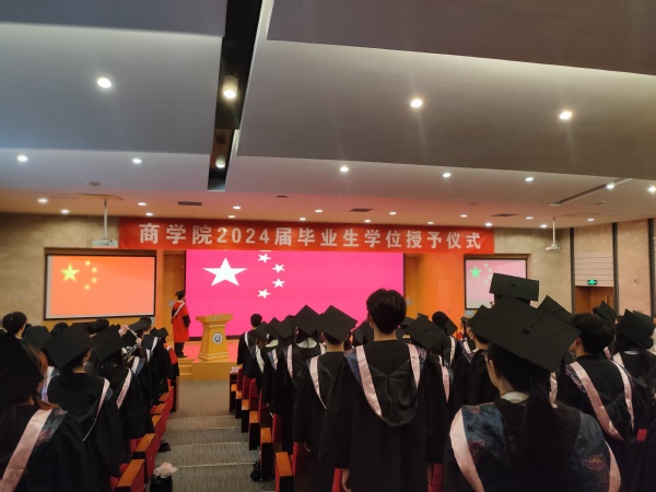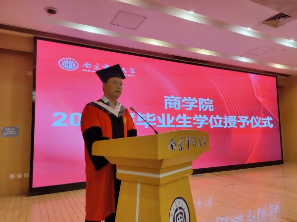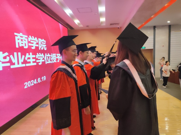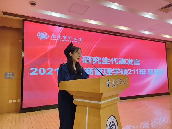 考取纪检监察机关公务员的2021级工商管理学硕211班薛雨杉作为研究生毕业生代表发言。薛雨杉说,在太阳成集团122ccvip的学习生活中,我们深入学习了工商管理领域的理论知识,掌握了现代企业的管理方法与技巧。通过课堂讨论、案例分析、团队项目等多种形式,我们不断提升自己的思维能力、创新能力和团队协作能力。同时,公司为我们提供了丰富的实践机会,让我们能够将所学知识应用于实际工作中,从而更好地适应社会发展的需要。薛雨杉表示,我们将继续秉承太阳成集团122ccvip“诚信、求是、笃学、致公”的校训精神及太阳成集团122ccvip“道术相济 弘商图治”的院训精神,将所学知识运用到实际工作中去,为经济社会高质量发展贡献自己的力量。
