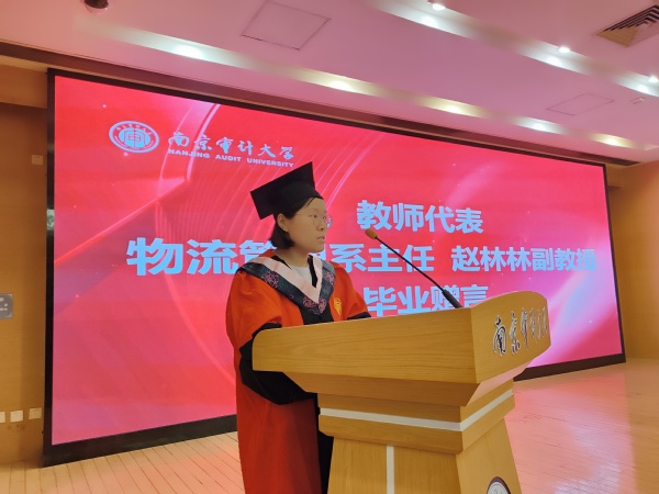 教师代表赵林林老师发表毕业赠言。赵林林告诉毕业生,在未来的道路上,你们将面临更多的机遇和挑战。无论遇到什么困难,都要坚持不懈地追求自己的梦想和目标。赵林林衷心祝愿名位毕业生人生如画、精彩纷呈!