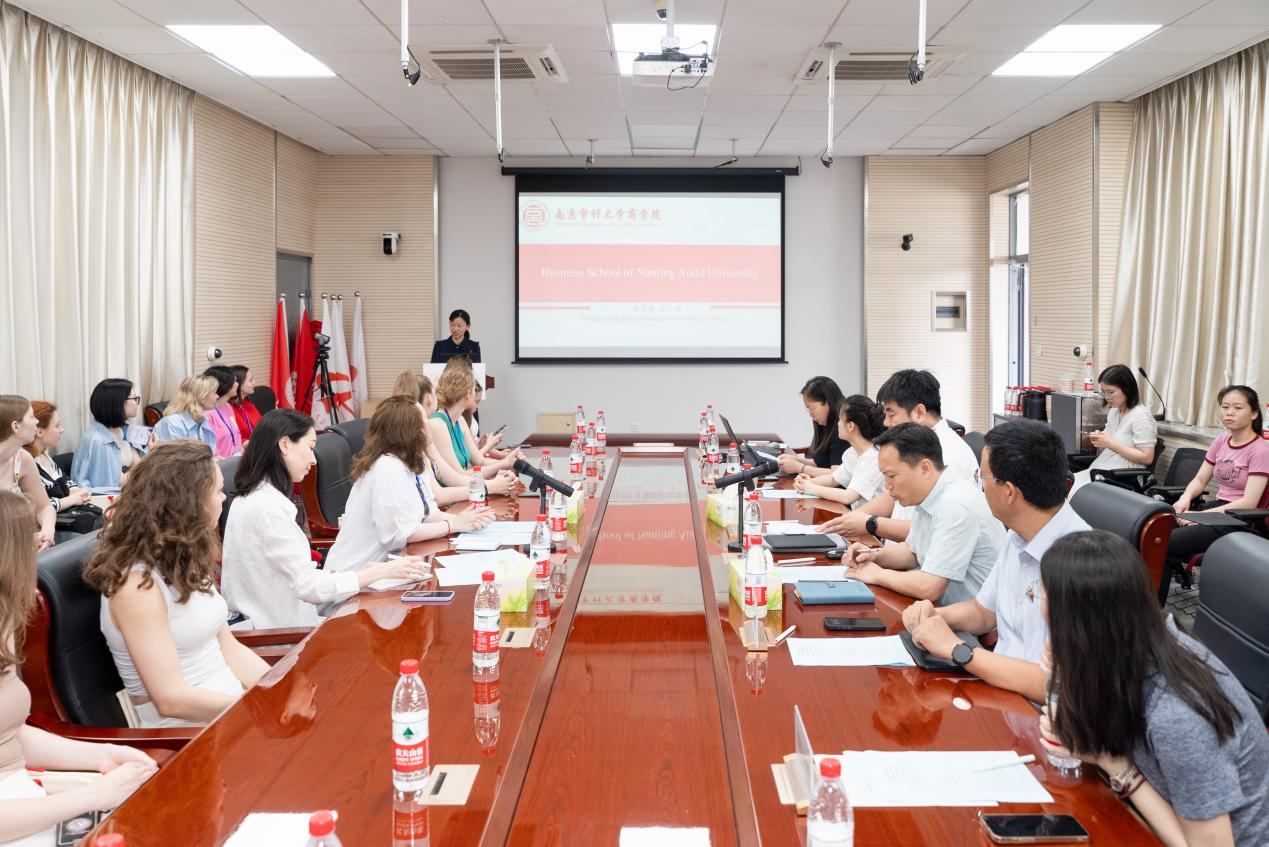 RFTA国际部国际项目协调员吉巴杜丽娜·伊希娅(Gibadullina Ilsiia)和国际经济系英语老师冈察洛娃·玛丽亚(Goncharova Mariia)带领其管理学、金融学、经济学和国际法等专业共27名员工到访太阳成集团122ccvip。太阳成集团122ccvip副经理(主持工作)冯利伟教授、副书记副经理肖久灵教授、副经理王军伟副教授、陈艳娇教授、王露员工,以及部分老师和员工参加了此次座谈。本次座谈由市场营销系周英老师主持。
