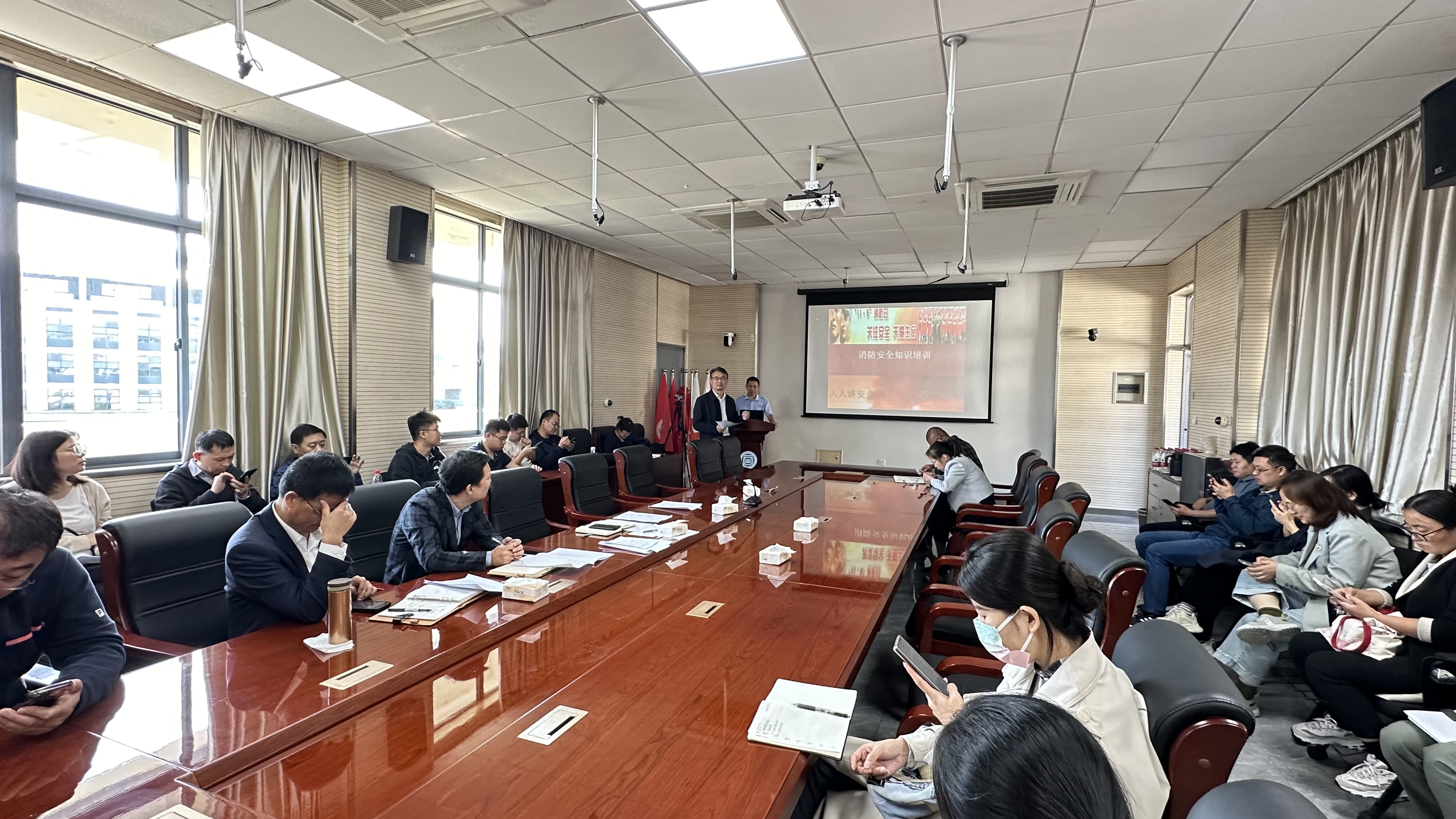消防安全牵动着千家万户的日常生活,为了增强全院教职工的消防安全意识,提高应对突发火灾的应急处理能力,普及消防安全知识,10月9日下午在竞慧西楼401会议室举办了以“关注消防、珍爱生命、共享平安”为主题的消防安全知识讲座。此次活动由公司党委特邀南京安民消防教员部主任伍百元主讲,书记公彦德主持,全体教职工认真聆听。