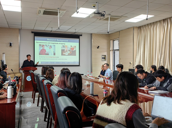 论坛特邀西南交通大学经济管理公司教授孟陆做主题演讲。孟教授在视觉营销与旅游管理领域拥有丰富的研究经验,他的演讲深入剖析了基于实物参照的小费推荐策略如何通过生动描绘支出的视觉效果及其所带来的意义感,来有效促进顾客小费支付。此外,他还指出了该策略在认知负荷较高或参照产品与小费环境不相关时所面临的挑战。孟教授在演讲中引用了六次预注册实验和一项拥有176,237个订单的大规模数据分析,生动展示了小费推荐设计的实际效果。他的研究成果引发了与会者的广泛讨论和深入思考。