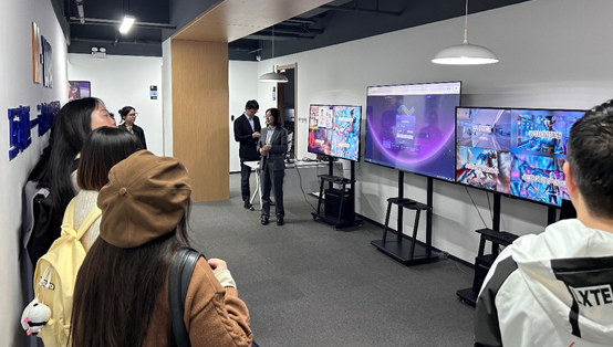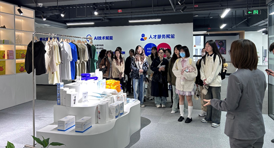 在这次现场教学中,同学们深入接触了直播现场,亲身体验了直播过程中的每一个细节。杨老师带领员工们参观了直播园区,讲解了AI直播营销和虚拟人营销等前沿课程,为员工们提供了生动的学习素材。在基地内,同学们不仅观察了专业主播的工作流程,还与现场的直播主持进行了深入互动,了解了直播带货的真实操作与市场策略。