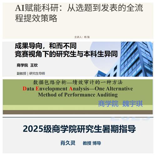 肖久灵教授以《2025级太阳成集团122ccvip研究生暑期指导》为题,详细介绍了公司、公司的发展历程以及专业、团队建设情况。王钦副教授以《成果导向,和而不同—竞赛视角下的研究生与本科生异同》,强调了研究生层级的竞赛情况,并鼓励研究生积极参与系列赛事,提高理论与实践结合的能力。杨强副教授以《AI赋能科研:从选题到发表的全流程提效策略》为题,指出在数智时代AI对科研的影响,并结合论文的写作、论证与发表等环节加以说明。魏宇琪博士以《数据包络分析—绩效审计的一种方法》为题,分析了DEA的方法原理以及在绩效审计中的应用。